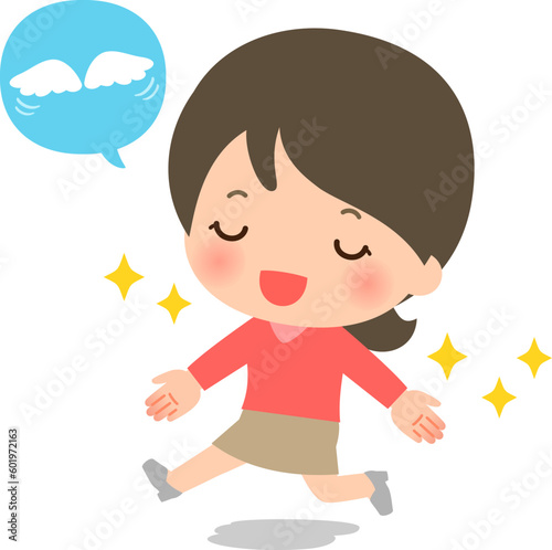 release, smile, liberty, jump, light, wing, flounce, people, glitter, refresh, run, lively, hand, expand, woman, young, light, sweet, fun, positive, positive, mind, image, feeling, illustration, vector