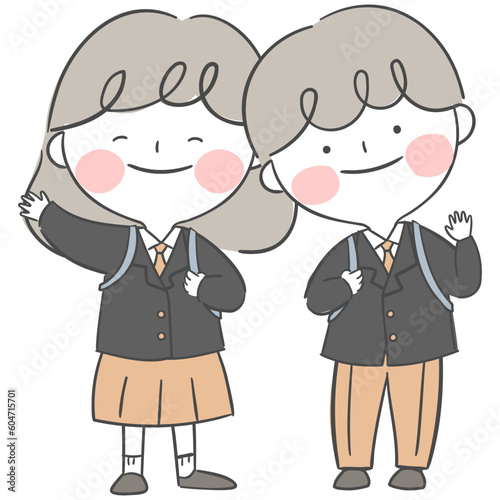 cartoon, man, character, student, uniform, smile, man, woman, telegraph, schoolboy, schoolgirl, cute, youth, teenage