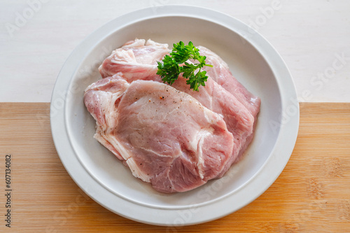 pork, meat, soft, live, pork, slice, salt, black pepper, dish, chopping board, grain, up, foodstuff, food, ingredient, fresh, fresh, food, material, parsley, japan, photo