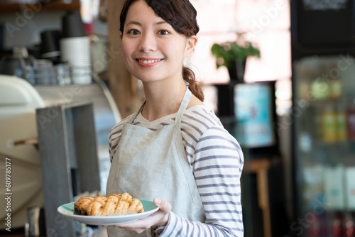 australia, coffee, natural, bread, lifestyle, indoor, sweet, overseas, work, business, possess, woman, smile, smile, waist up, people, clerk, japanese, eatery