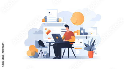 ビジネス, ビジネスイラスト, ブログ, イラスト、おしゃれ、プレゼン、パソコン、ブログを書く人