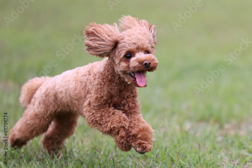嬉しそうに走るトイプードル