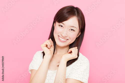 woman, girl, smile, rejoice, smile, fun, joyful, casual, ol, young, sweet, people, japanese, model, portrait, alone, asian, copy space, pink, background
