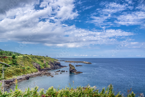 hokkaido, drive, sea, sky, cloud, miscanthus sinensis, rock, cape, wind
