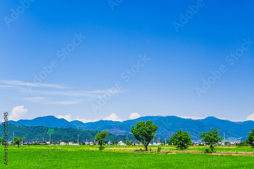 summer, nature, landscape, mountain, sky, green, wood, idyl, suburban, blue skies, copy space, green, green, mountain chain, mountain, refresh, relax, cloud, sunny, journey, travel, summer getaway, tourist attraction, tour tourism, eco, ecology, countryside, rice field, leisure, drive, open air, japan, photo