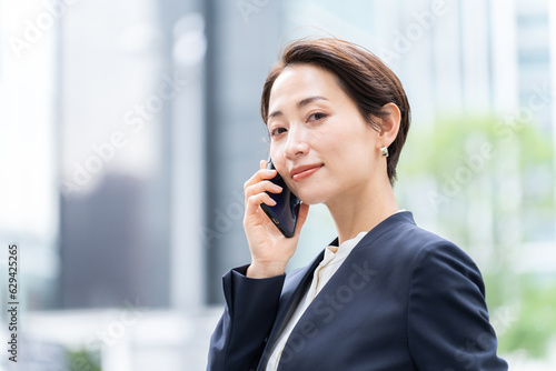 business, woman, businessman, smartphone, smartphone, mobile phone, call, call, speaking, conversation, smile, middle-aged, japanese, asian, 30s, ol, salaried employee, suit, employee, outside, open air, salesman, business travel, commute, attendance, businesswoman, carrier, manpower, tokyo, office, business district, building, happy, people