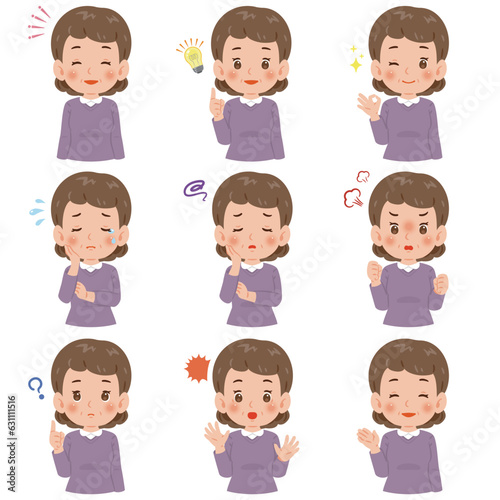 gesture, middle-aged, young, nanny, feeling, waist up, smile, rejoice, problem, mother, woman, people, white background, homemaker, japan, vector, sweet, cut, illustration, illustration, image, material, design, icon, resent, surprised, surprised, cry, menopause