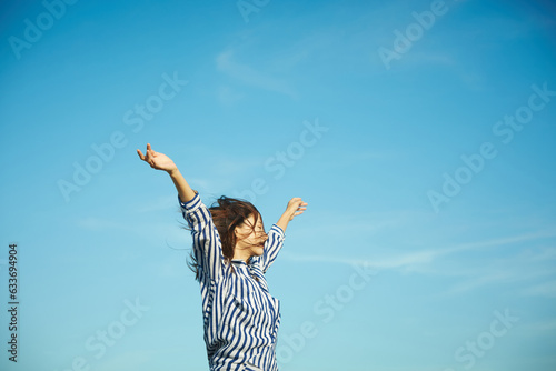 portrait, people, woman, young, 30s, asian, japanese, korean, open air, open air, sea, park, beach, beach, evening, sunset, fall, spring, blue skies, lifestyle, vacation, walk, nature, wind, relax, date, travel, journey, tour tourism, cosmetic, beauty, beauty, happy, relax, contemplate, sweet, pretty