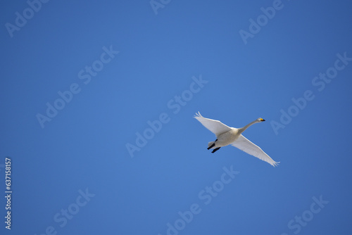 cygnet, cygnet, fly, flying, blue skies, passage, winter, migrant, wild, animal, nature, landscape, hokkaido, japan
