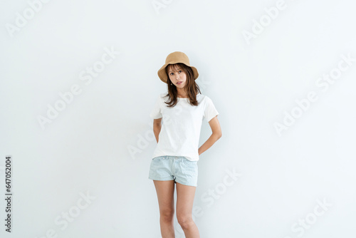 woman, hat, leghorn, fashion, summer, hair, studio, model, person, pose, glamour, 1, jean, style, lady, face, long, standing, brunette, japanese, fun, cowgirl, beauty, dress
