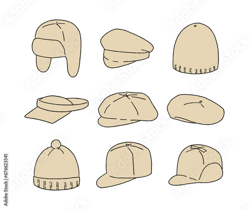 ベージュの帽子のイラストセット