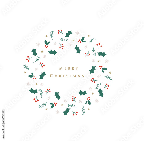 シンプルでおしゃれなクリスマスリースのイラスト