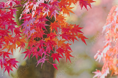 fall, landscape, nature, plant, mountain, wood, japan, sunny, blue skies, tourist attraction, yellow, red, leaf, maple, tour tourism, open air