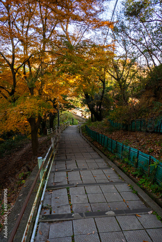 japan, tour tourism, fall, landscape, nature, tourist attraction, leaf, plant, maple, wood, showplace, red, open air, yellow, route, climb, hike, clean, lovely, adventure, background, emotion, day, sunny, light, sun, walk, season, sett, staircase, travel