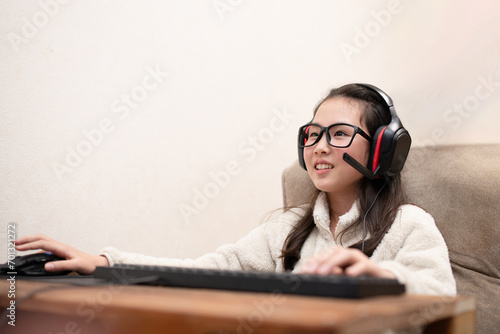 children, girl, personal computer, earphones, game, cyberspace, programming, mouse, keyboard, personal computer, indoor, people, girl, woman, 11, pretty, fun, home, pursuit, net, operation, chat, online, communication, headset, headset, music, lifestyle, technology, digital, game, asian, japanese, mixed race, white, copy space