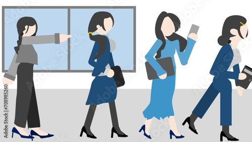 目的地へ急ぐ女性たちのイラスト