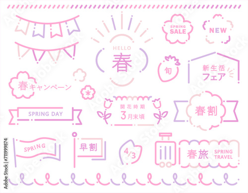 春に使えるフレーム あしらい セット ( 編集可能 ベクター 素材 ポップ レトロ シンプル ピンク パープル )