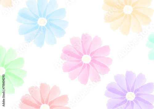 水彩のカラフルな花が並んだ背景イラスト