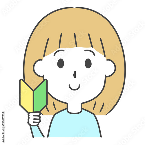 woman, beginner, newcomer, business, waist up, training, car, drive, signs, mark, signs, signs, attention, signal, symbol, yellow, green, mother, girl, homemaker, smile, adult, children, student, mother, mother, 30s, sweet, people, young, expression, character, illustration, material, illustration, pose, design, white background
