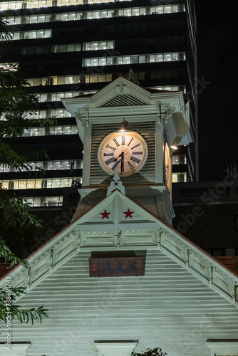 日本 北海道札幌市中央区のライトアップされた札幌市時計台