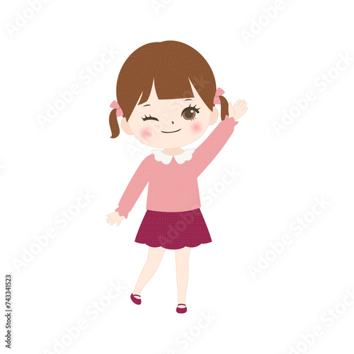 children, sweet, refer, please, announcement, exposition, girl, pose, wink, smile, fun, people, alien, children, illustration, joyful, illustration, vector