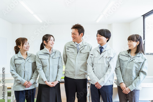 工場・工務店などの中小企業で働く作業着を着た従業員・スタッフ(ビジネスマン・ビジネスウーマン)