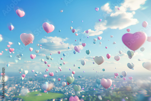 balloon, balloon, get-together, event, helium, balloon, heart, happiness, firmament, anniversary, blue skies, sky, cloud, celebration, love, illustration, background, material, background, wallpaper
