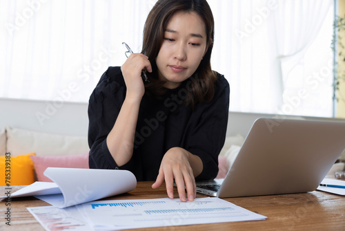 햇살이 드는 창가 테이블에서 랩탑을 이용하여 업무중인 비즈니스우먼
