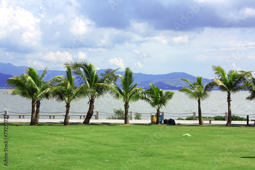 landscape, sea, land, meadow, field, forest, palm tree, resort, summer, mountain, ridge, daytime, horizontal, photo, calla