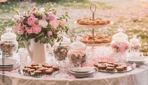 tea, cup, table, food, flower, coffee, sweet, dish, breakfast, drink, cake, pink, sweet, saucer, decoration, glasses, pot, wedding, set, nobody, rose, bouquet, fresh, drink