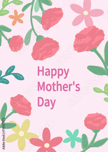 flower, floral, design, pink, nature, illustration, card, mother's day, carnation