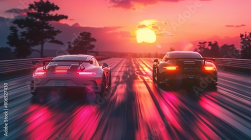 幻想的な空と自動車
