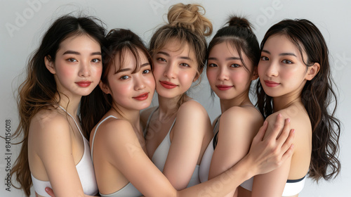 woman, japanese, group, smile, bust, underclothes, bra, camisole, asian, young, cosmetic, beauty, health care, white, background, physiology, portrait, girl, skincare, cosmetic, group, exercise, lifestyle, working out, lose weight, solidarity, yoga, diet, beauty, clinic, trouble