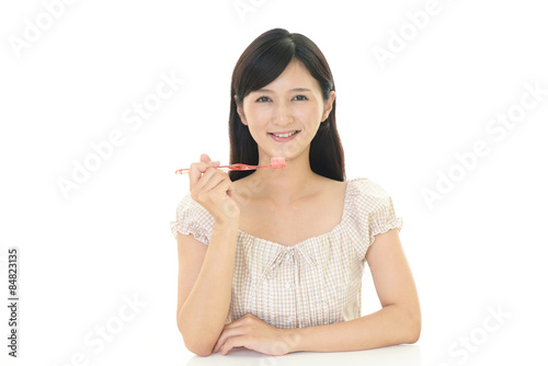 woman, people, woman, people, cosmetic, health, pajama, toothbrush, mouth, go to bed, sleep, lifestyle, young, adult, sweet, pretty, smile, smile, smile, happy, happiness, lively, skincare, diet, model, beauty, girl, relaxation, relax, relaxation, refresh, expression, flop, alone, okinawa, japanese, asian, waist up, copy space, white background