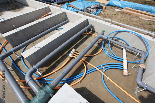 building site, construction site, site, construction, architecture, house, home, property, house, design, basic, mounting, piping, sewage, drainage, water heater, piping, concrete, image, japan