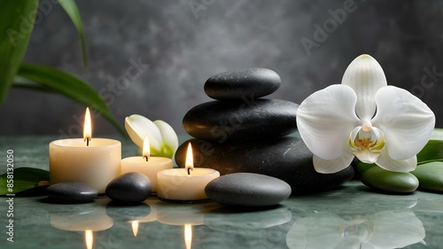 禅石とキャンドルのリラクゼーション/胡蝶蘭の花