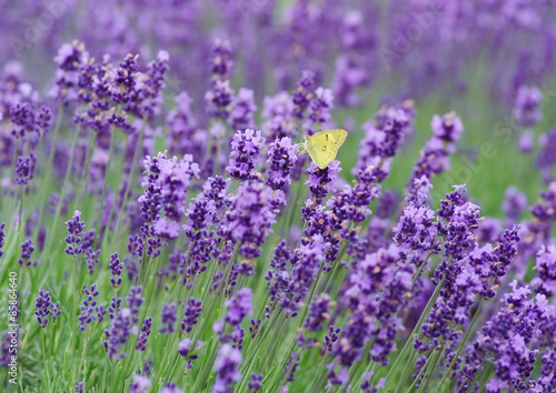 ラベンダー畑にモンキチョウ