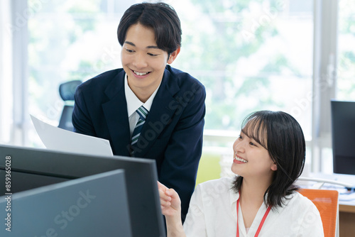 office, businessman, employee, smile, business, work, work, consultation, woman, man, young, corporation, indoor, indoor, corporate, personal computer, suit, black hair, ol, smile, smile, office, people, temp, japanese, portrait, office, colleague, desk, staff, venture, speaking, document, cooperation, table, conversation, two people