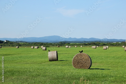 hokkaido, ranch, grass, straw, crow