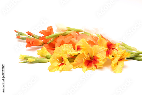 gladiola, flower, yellow, orange, nature, unmanned, indoor, copy space