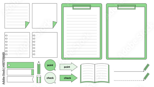 paper, noto, note, page, book, notebook, vector, lead pencil, eraser, decoration, green, binder, post-it note, text, frame, green