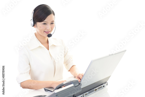 woman, people, operator, people, call center, customer service, business, work, office, sweet, pretty, young, adult, personal computer, notebook, cyberspace, smile, smile, headset, telemarketing, work, call, woman, corporation, suit, shirt, lively, happy, happiness, health, cosmetic, model, beauty, girl, fun, expression, alone, japanese, asian, copy space, waist up, white background