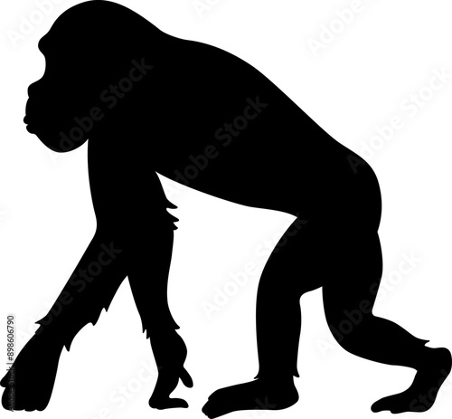 chimpanzee, primate, ape, monkey, monkey, wild, animal, creature, mammal, zoo, illustration, white background, vector, icon, silhouette, black-and-white, monochrome, monochrome