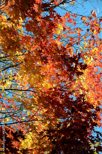 maple, leaf, orange, red, blue, fall, season, daytime, shadow, branch, landscape, japan, plant, material, background, wood, foliage, sky, pigmentation, natural, light, backlighting, yellow, blue skies, outdoors