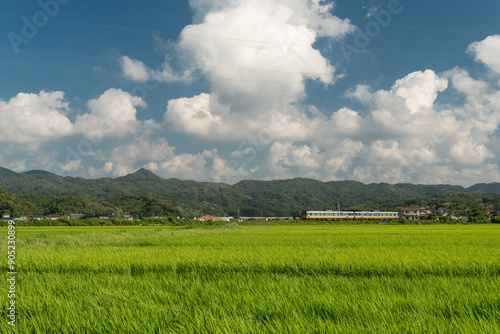 stream, nature, forest, landscape, summer, green, sky, mountain, beauty, natural, view, summer, verdure, relax, healing, wood, countryside, japan, sum, summer getaway, cloud, blue skies, idyl, train, car, run, thunderhead