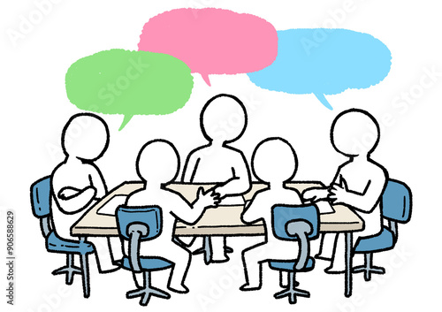 meeting, view, discussion, android, office, sitting, businessman, meeting, business, work, team, illustration, communication, group, table