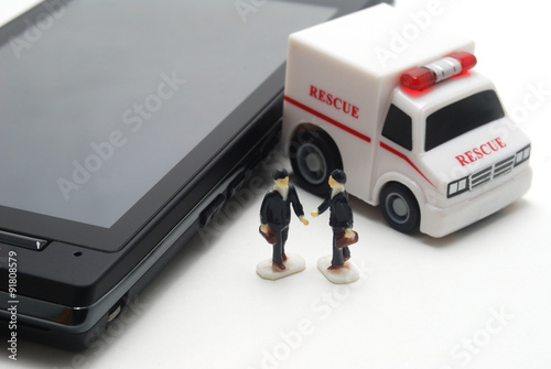 ambulance, doll, person, smartphone, smartphone, mobile phone, medical care, emergency, emergency, car, move