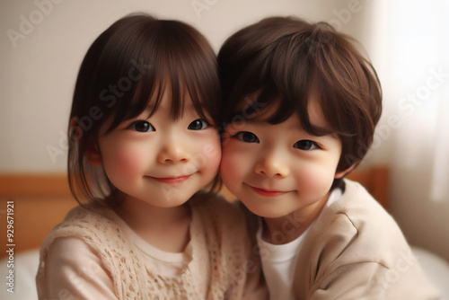 person, japan, japanese, asian, together, 2, two people, indoor, indoor, smile, smile, happy, happiness, happiness, joyful, fun, enjoyment, model, ai, children, children, children, boy, girl, little, childhood, sister, brother, son, daughter