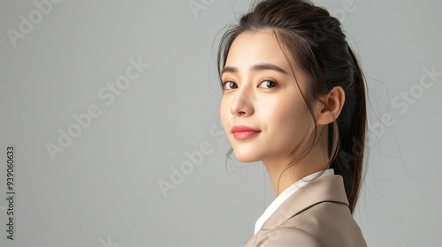 woman, suit, work, lovely, japanese, beauty, face, hair, smiling, business, person, model, businesswoman, fashion, eye, studio, 1, up