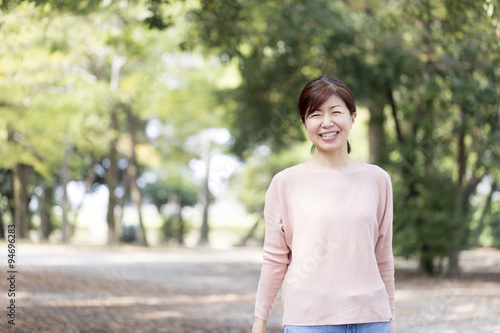 people, woman, japanese, open air, lively, smile, light, fun, nature, sunny, pose, casual, spring, fall, portrait, 50's, middle-aged, model, expression, young, health